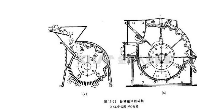 Motoren driver rotoren for å rotere med høy hastighet i knusekammeret. Materialet mates inn i maskinen fra den øvre fôringsporten og knuses av påvirkning, innvirkning, skjæring og sliping av høyhastighetshammeren. I bunnen av rotoren er det en skjermplate. Partikkelstørrelsen mindre enn skjermhullstørrelsen i det knuste materialet slippes ut gjennom skjermplaten, og den grove partikkelstørrelsen som er større enn skjermhullstørrelsen, holdes på skjermplaten og fortsetter å bli truffet og malt av hammeren, og til slutt tømmes ut av maskinen gjennom skjermplaten.